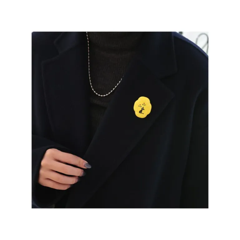 Broche jaune avec Jiji. La couleur sera parfaite pour l’automne et l’hiver.