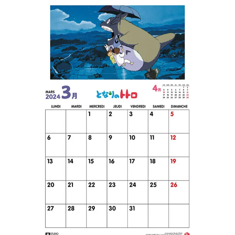 Magnifique calendrier Totoro 2024 version française.