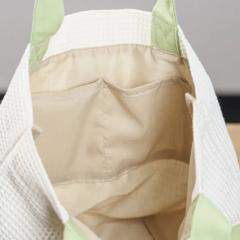 Un magnifique sac à la texture gaufrée pour y emporter toutes vos affaires.